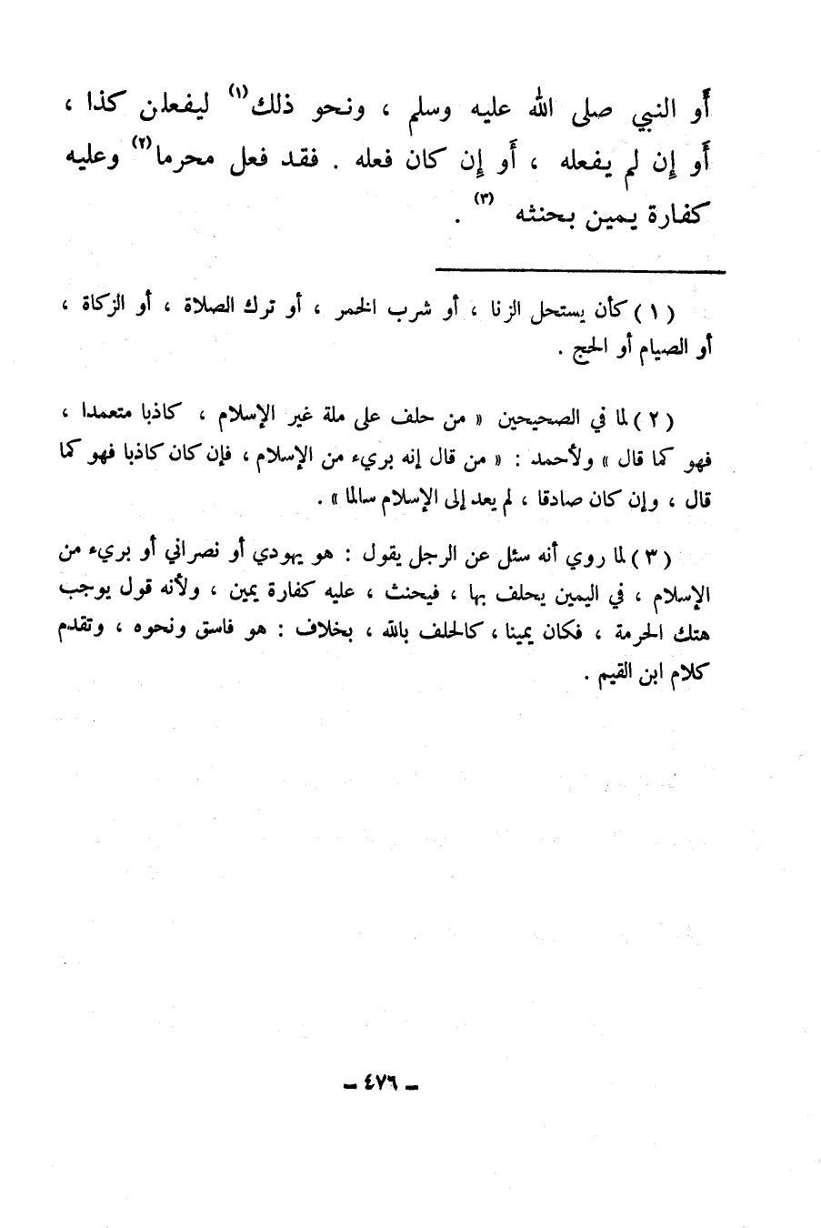 (¬3) لما روي أنه سأل عن الرجل يقول: هو يهودي أو نصراني أو برئ من الإسلام في اليمين يحلف بها، فيحنث عليه كفارة يمين، ولأنه قول يوجب هتك الحرمة، فكان يمينا كالحلف بالله، بخلاف: هو فاسق ونحوه، وتقدم كلام ابن القيم.