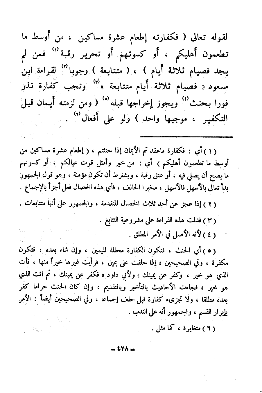 لقوله تعالى: {فَكَفَّارَتُهُ إِطْعَامُ عَشَرَةِ مَسَاكِينَ مِنْ أَوْسَطِ مَا تُطْعِمُونَ أَهْلِيكُمْ أَوْ كِسْوَتُهُمْ أَوْ تَحْرِيرُ رَقَبَةٍ (¬1) فَمَنْ لَمْ يَجِدْ فَصِيَامُ ثَلاثَةِ أَيَّامٍ} (متتابعة) وجوبا (¬2) لقراءة ابن مسعود فصيام ثلاثة أيام متتابعة (¬3) .