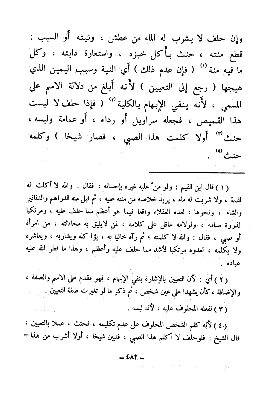(¬1) قال ابن القيم: ولو من عليه غيره بإحسانه، فقال: والله لا أكلت له لقمة، ولا شربت له ماء، يريد خلاصه من منته عليه، ثم قبل منه الدراهم والدنانير والشاء، ونحوها لعدة العقلاء واقعا فيما هو أعظم مما حلف عليهن ومرتكبا لذروة سنامه، ولولامه عاقل على كلامه، لمن لا يليق به محادثته، ومن امرأة أو صي، فقالك والله لا كلمته، ثم رآه خاليا به، يؤا كله ويشاربه ويعاشره ولا يكلمه، لعدوه مرتكبا لأشد مما حلف عليه وأعظم وهذا ما فطر الله عليه عباده.