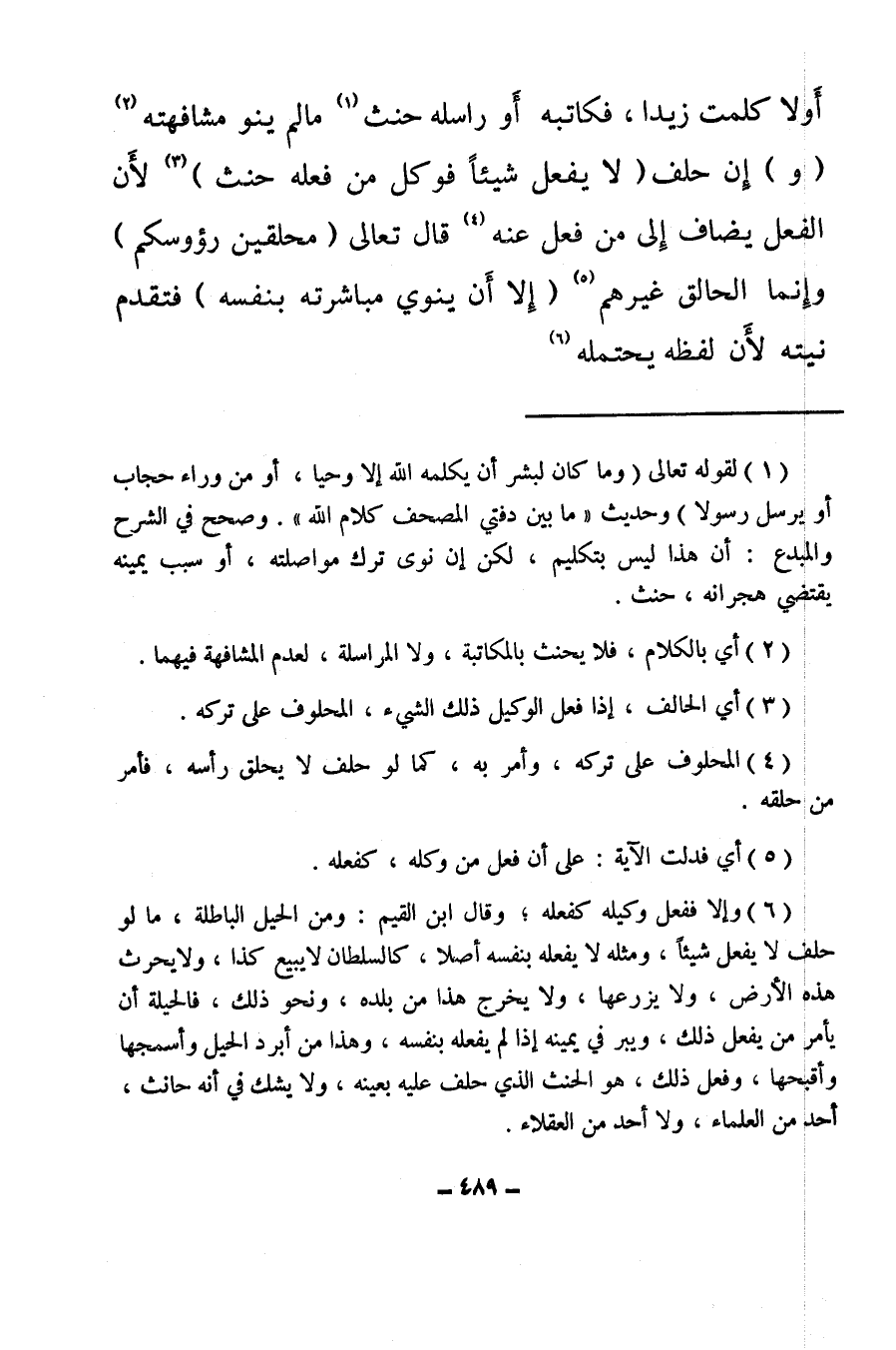 (¬1) لقوله تعالى: {وَمَا كَانَ لِبَشَرٍ أَنْ يُكَلِّمَهُ اللهُ إِلا وَحْيًا أَوْ مِنْ وَرَاءِ حِجَابٍ أَوْ يُرْسِلَ رَسُولاً} وحديث ما بين دفتي المصحف كلام الله، وصحح في الشرح والمبدع، أن هذا ليس بتكليم، لكن إن نوى ترك مواصلته، أو سبب يمينه يقتضي هجرانه حنث.