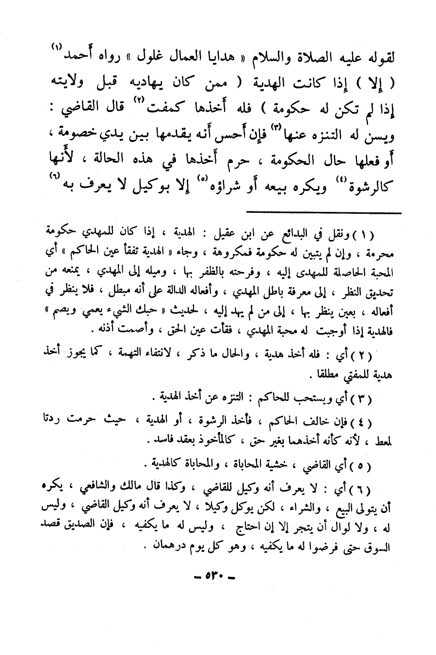 (¬1) ونقل في البدائع عن ابن عقيل: الهداية، إذا كان للمهدي حكومة محرمة، وإن لم يتبين له حكومة فمكروهة، وجاء الهدية تفقأ عين الحاكم، أي المحبة الحاصلة للمهدي إليه، وفرحته بالظفر بها، وميله إلى المهدي، يمنعه من تحديق النظر، إلى معرفة باطل المهدى، وأفعاله الدالة على أنه مبطل، فلا ينظر في أفعاله، بعين ينظر بها، إلى من لم يهد إليه، لحديث: «حبك الشيء يعمي ويصم» ، فالهدية إذا أوجبت له محبة المهدي، فقات عين الحق، وأصمت أذنه.