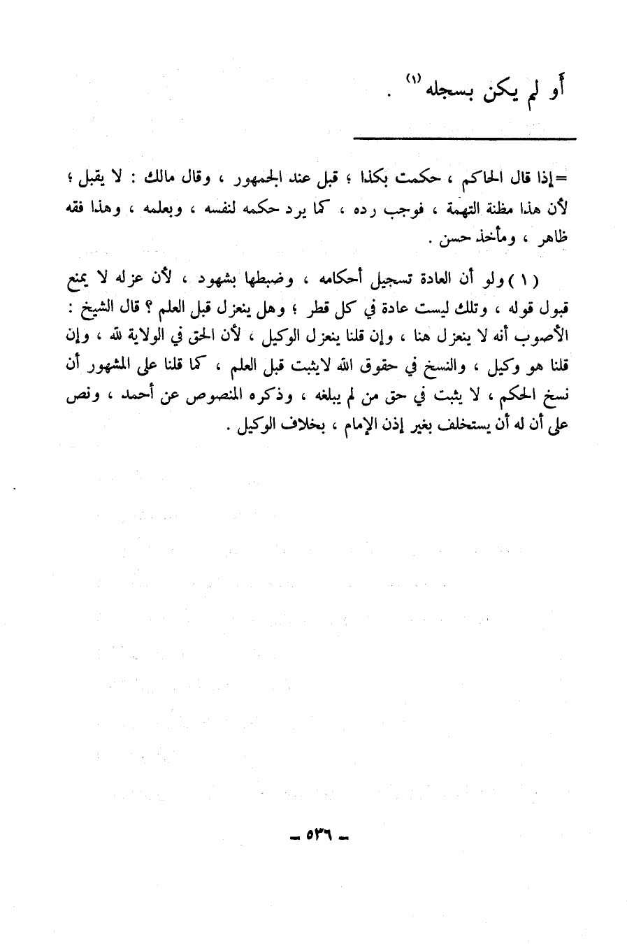 (¬1) ولو أن العادة تسجيل أحكامه، وضبطها بشهود، لأن عزله لا يمنع قبوله قوله، وتلك ليست عادة في كل قطر، وهل ينعزل قبل العلم؟ قال الشيخ: الأصوب أنه لا ينعزل هنا، وإن قلنا ينعزل الوكيل، لأن الحق في الولاية لله، وإن قلنا هو وكيل، والنسخ في حقوق الله لا يثبت قبل العلم، كما قلنا على المشهور، أن نسخ الحكم، لا يثبت في حق من لم يبلغه، وذكره المنصوص عن أحمد، ونص على أن له أن يستخلف بغير إذن الإمام، بخلاف الوكيل.