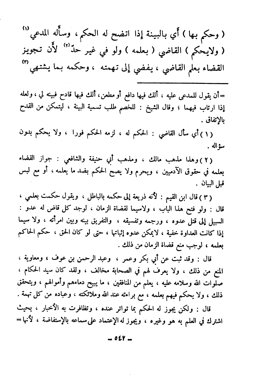 (¬2) وهذا مذهب مالك، ومذهب أبي حنيفة والشافعي، جواز القضاء بعلمه في حقوق الآدميين، ويحرم ولا يصح الحكم بضد ما يعلمه، أو مع ليس قبل