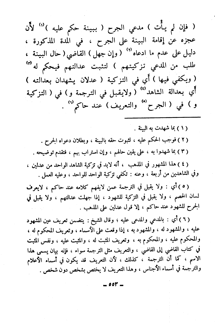 (¬5) أي: ولا يقبل في الترجمة عمن لا يفهم كلامه عند حاكم، لا يعرف لسان الخصم ولا يقبل في التزكية للشهود، إذا جهلت عدالتهم، ولا يقبل في الجرح للشهود عند حاكم، إلا قول عدلين على المذهب.