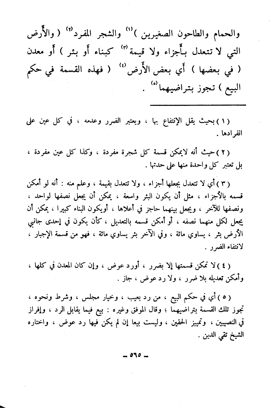 (¬2) حيث أنه لا يمكن قسمة كل شجرة مفردة، وكذا كل عين مفردة، بل تعتبر كل واحدة منها على حدتها.