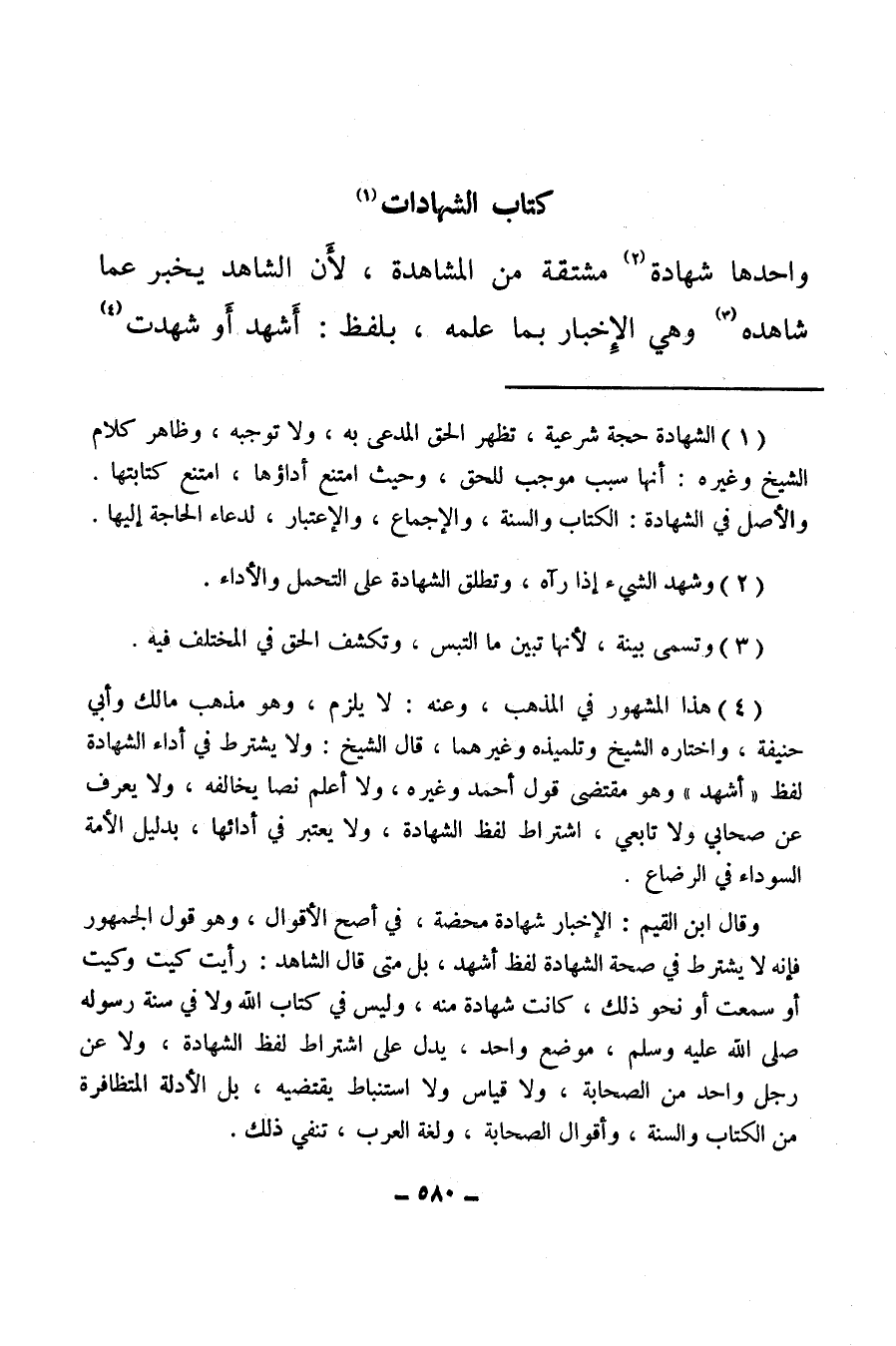 (واحدها شهادة (¬2) مشتقة من المشاهدة، لأن الشاهد يخبر عما شاهده (¬3) وهي الإخبار بما علمه، بلفظ: أشهد أو شهدت (¬4)