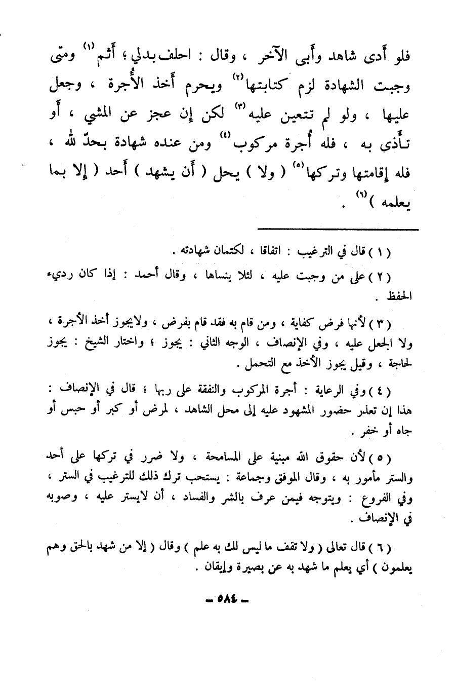 (¬4) وفي الرعاية: أجرة المركوب والنفقة على ربها، قال في الإنصاف: هذا إن تعذر حضور المشهود عليه إلى محل الشاهد، لمرض أو كبر أو حبس أو جاه أو خفر.