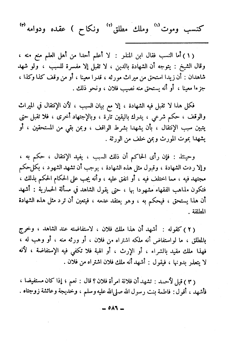 كنسب وموت (¬1) وملك مطلق (¬2) ونكاح) عقده ودوامه (¬3)