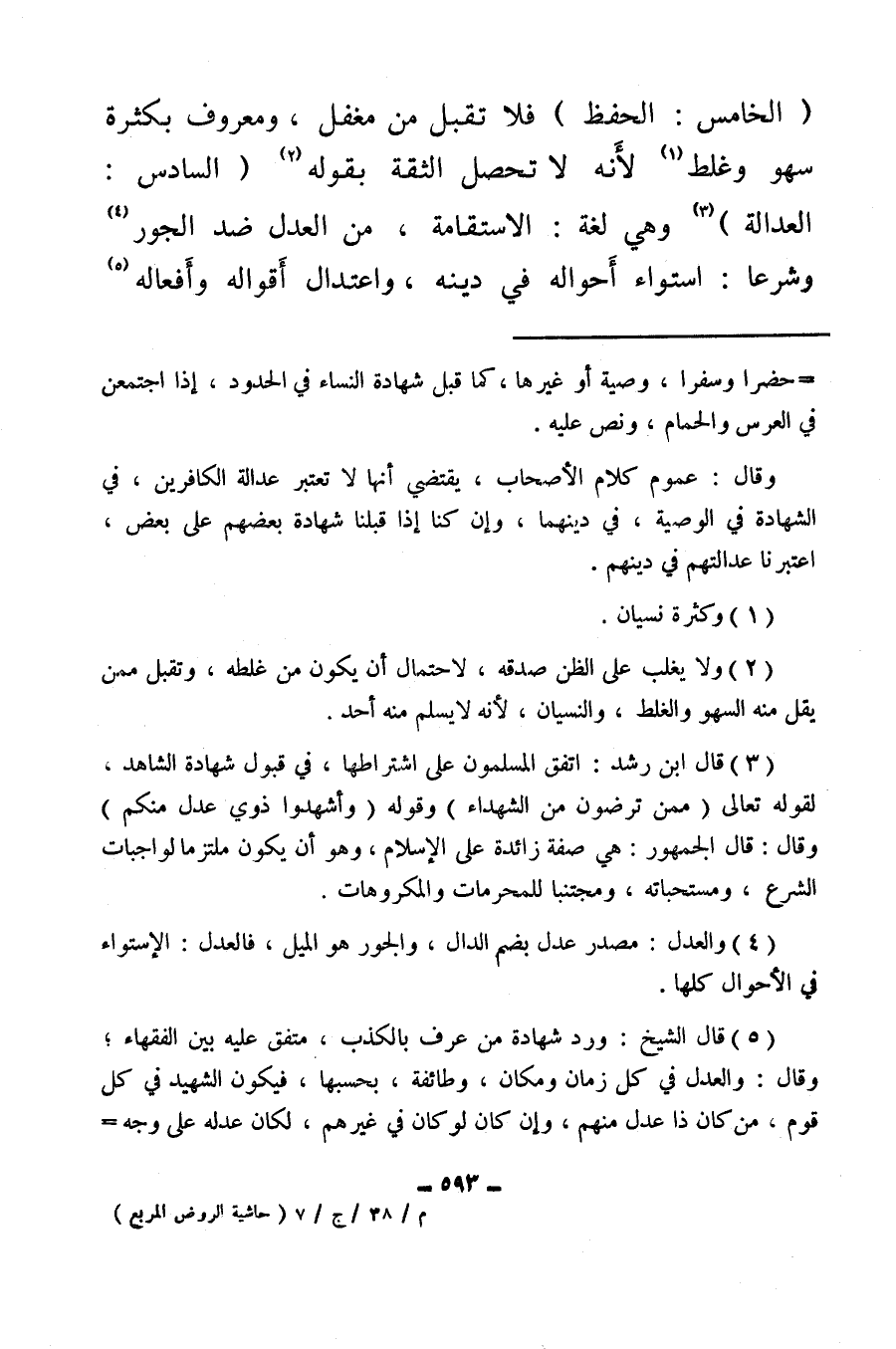 (¬3) قال ابن رشد: اتفق المسلمون على اشتراطها، في قبول شهادة الشاهد، لقوله تعالى {مِمَّنْ تَرْضَوْنَ مِنَ الشُّهَدَاءِ} وقوله {وَأَشْهِدُوا ذَوَيْ عَدْلٍ مِنْكُمْ} وقال: قال الجمهور: هي صفة زائدة على الإسلام، وهو أن يكون ملتزما لواجبات الشرع، ومستحباته، ومجتنبا للمحرمات والمكروهات.