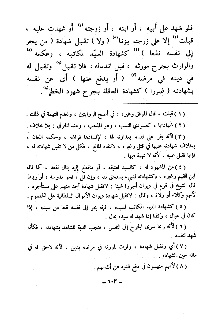 (¬5) كشهادة العبد المكاتب لسيده، فإنه يجر إلى نفسه نفعا من سيده، إذا كان في عيال، وكذا إذا شهد له سيده بمال.