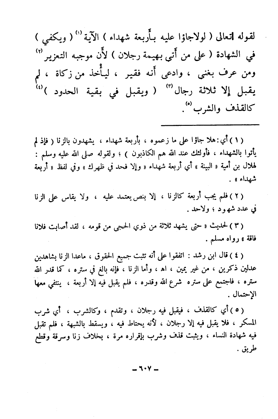 (¬4) قال ابن رشد: اتفقوا على أنه تثبت جميع الحقوق، ما عدا الزنا بشاهدين عدلين ذكرين، من غير يمين اهـ وأما الزنا، فإنه بالغ في سترة، كما قدر الله ستره، فاجتمع على ستره شرع الله وقدره، فلم يقبل فيه إلا أربعة، ينتفي معها الاحتمال.