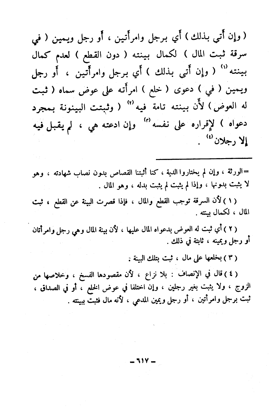 (¬4) قال في الإنصاف: بلا نزاع لأن مقصودها الفسخ، وخلاصها من الزوج، ولا يثبت بغير رجلين، وإن اختلفا في عوض الخلع، أو في الصداق، ثبت برجل وامرأتين، أو رجل ويمين المدعي، لأنه مال فثبت ببينته.