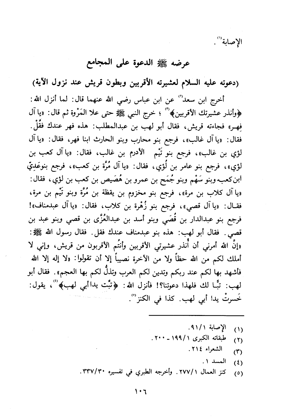 عرضه ت الدعوة على المجامع دعوته عليه السلام لعشيرته الأقربين وبطون قريش عند نزول الآية