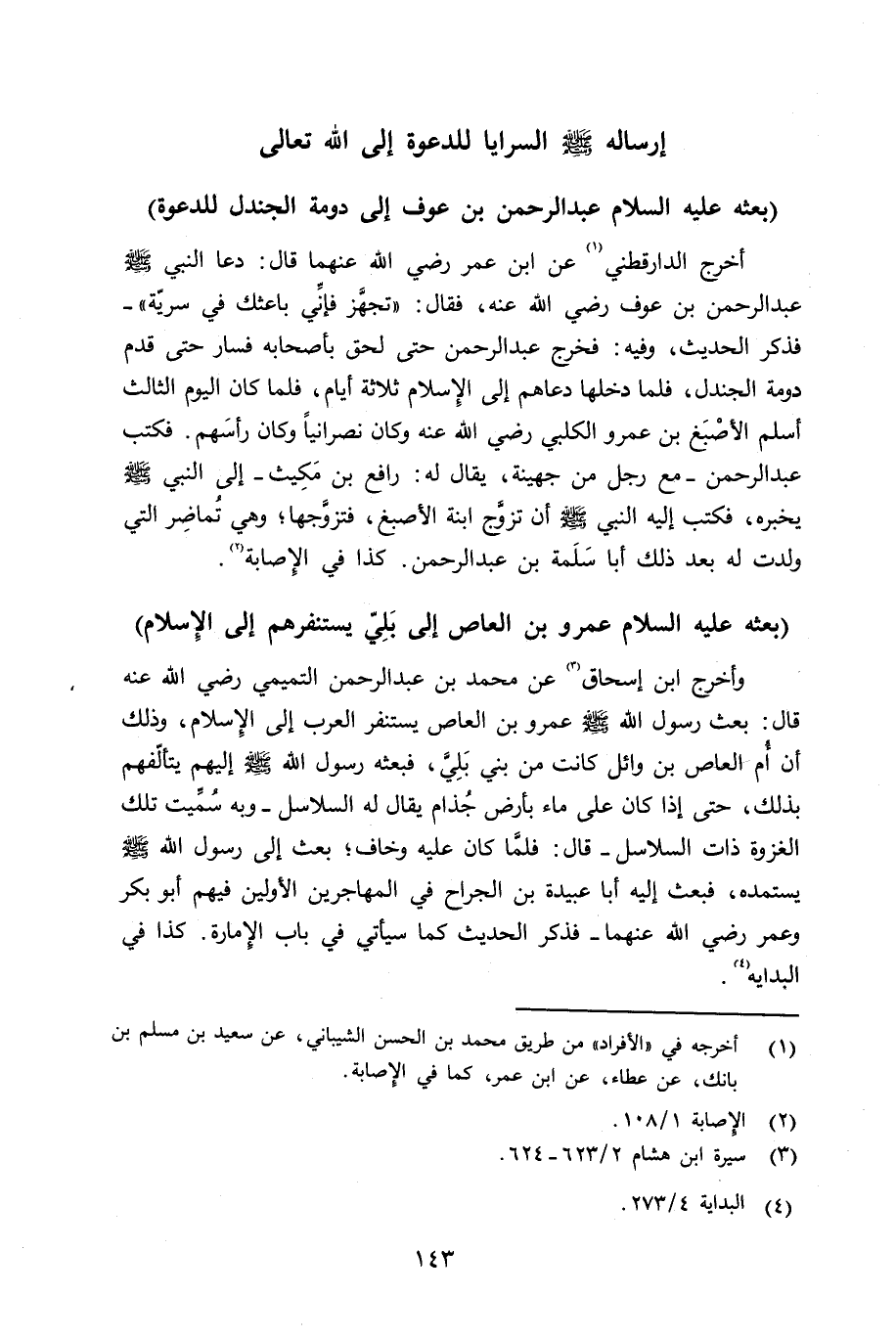 إرساله صلى الله عليه وسلم السرايا للدعوة إلى الله تعالى بعثه عليه السلام عبد الرحمن بن عوف إلى دومة الجندل للدعوة