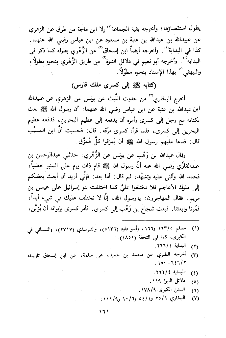 يطول استقصاؤها؛ وأخرجه بقية الجماعة إِلا ابن ماجه من طرق عن الزهري عن عبيد الله بن عبد الله بن عتبة بن مسعود عن ابن عباس رضي الله عنهما. كذا في البداية. وأخرجه أيضاً ابن إِسحاق عن الزُّهري بطوله كما ذكر في البداية. وأخرجه أبو نعيم في دلائل النبوة (ص 119) من طريق الزُّهْري بنحوه مطولاً، والبيهقي بهذا الإِسناد بنحوه