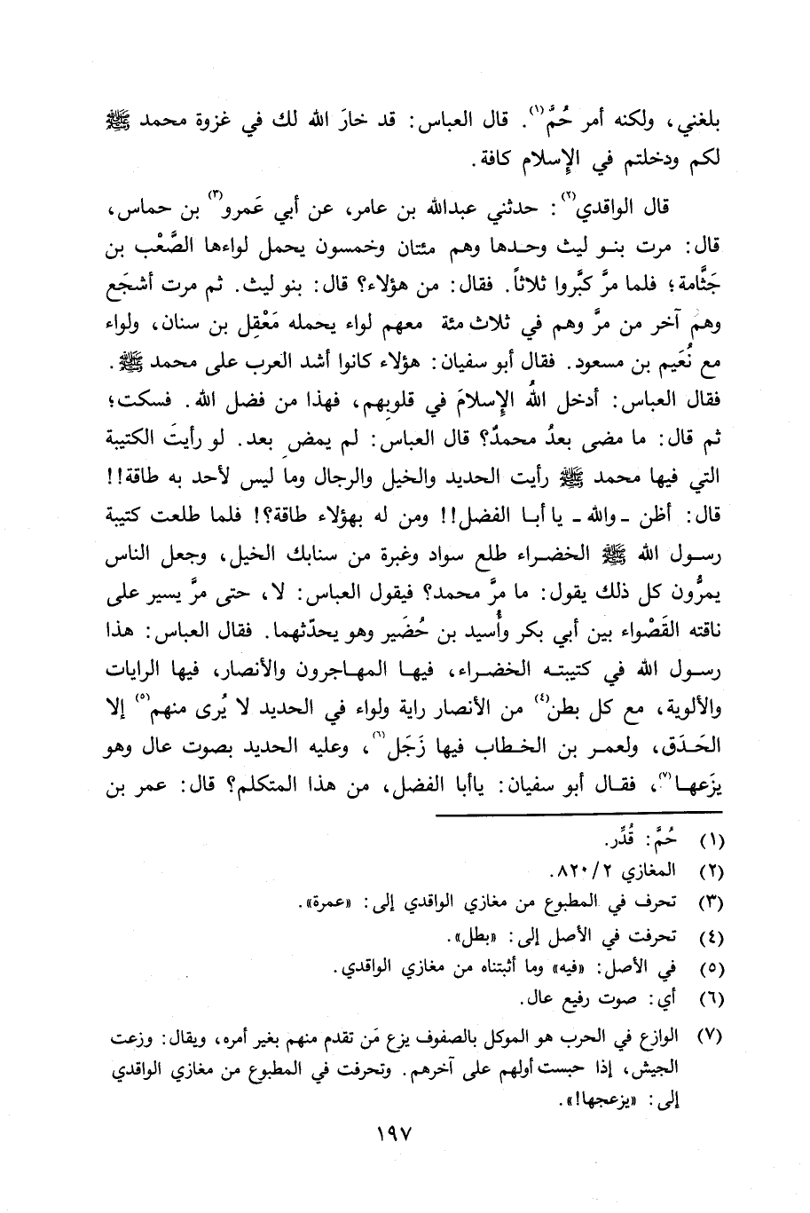 بلغني، لكنه أمر حُمَّ. قال العباس: قد خارَ الله لك في غزوة محمد صلى الله عليه وسلم لكم ودخلتم في الإِسلام كافة.