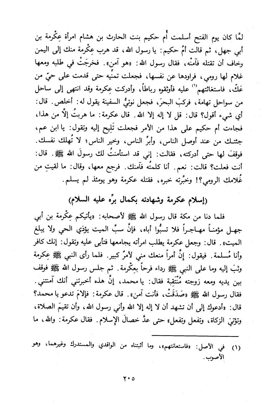 إسلام عكرمة وشهادته بكمال برِّه عليه السلام