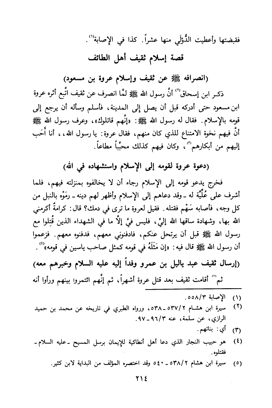 قصة إسلام ثقيف أهل الطائف إنصرافه صلى الله عليه وسلم عن ثقيف وإسلام عروة بن مسعود