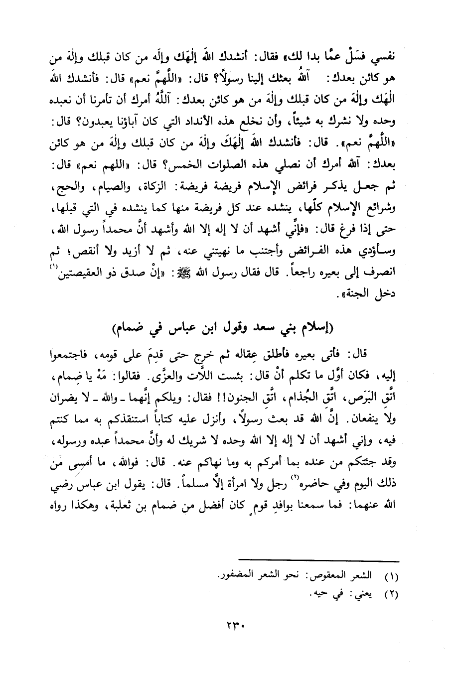 إسلام بني سعد وقول ابن عباس في ضمام