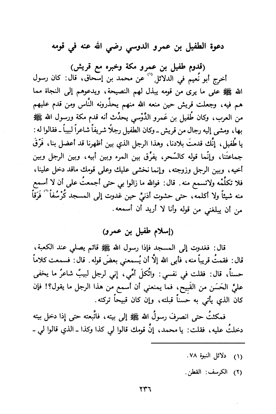 دعوة الطفيل بن عمرو الدوسي رضي الله عنه في قومه قدوم طفيل بن عمرو مكة وخبره مع قريش