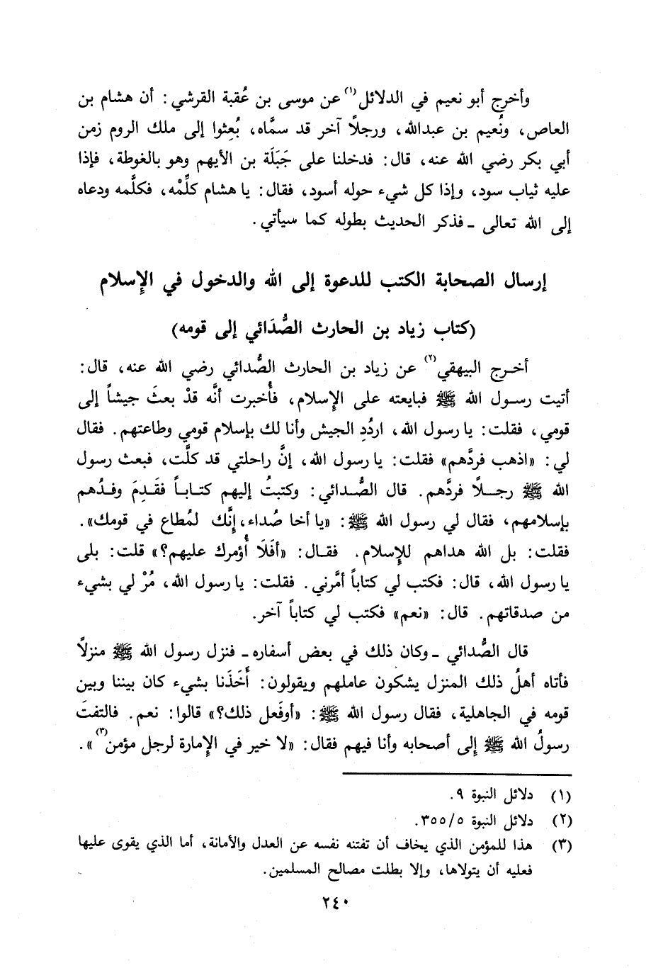 إرسال الصحابة الكتب للدعوة إلى الله والدخول في الإِسلام كتاب زياد بن الحارث الصُّدَائي إلى قومه