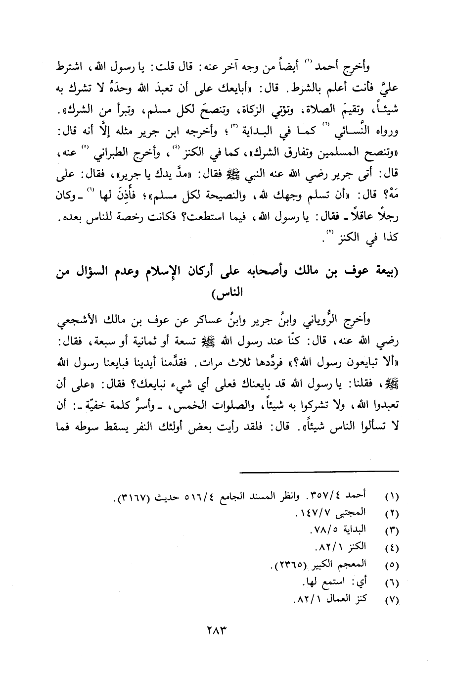 بيعة عوف بن مالك وأصحابه على أركان الإِسلام وعدم السؤال من الناس