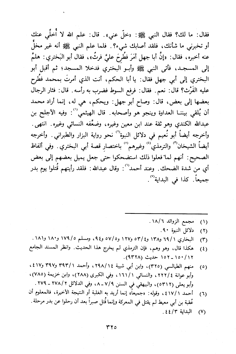 وأخرجه أيضاً الشيخان، والترمذي وغيرهم باختصارِ قصة أبي البختري. وفي ألفاظ الصحيح: أنهم لما فعلوا ذلك استضحكوا حتى جعل يميل بعضهم إلى بعض أي من شدة الضحك. وعند أحمد: وقال عبد الله: فلقد رأيتهم قُتلوا يوم بدر جميعاً. كذا في البداية.