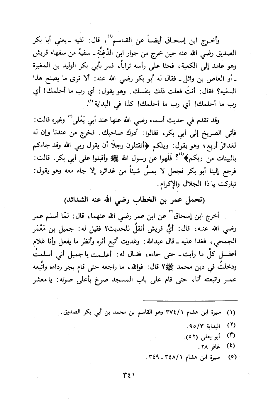 وقد تقدم في حديث أسماء رضي الله عنها (ص 268) عند أبي يَعْلى وغيره قالت: فأتى الصريخ إِلى أبي بكر، فقالوا: أدرك صاحبك. فخرج من عندنا وإِن له لغدائرَ أربع؛ وهو يقول: ويلكم «أتقتلون رجلاً أن يقول ربي الله وقد جاءكم بالبينات من ربكم؟» فَلَهوا عن رسول الله صلى الله عليه وسلم وأقبلوا على أبي بكر. قالت: فرجع إِلينا أبو بكر فجعل لا يمسُّ شيئاً من غدائره إلا جاء معه وهو يقول: تباركت يا ذا الجلال والإِكرام.