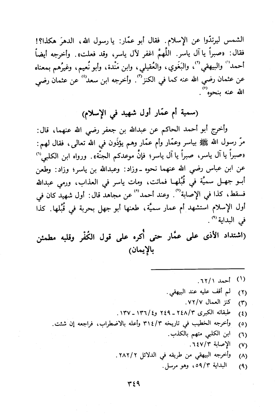 الشمس ليرتدّوا عن الإِسلام. فقال أبو عمّار. يا رسول الله، الدهرَ هكذا؟ فقال: «صبراً يا آل ياسر. اللَّهمَّ إغفر لآل ياسر، وقد فعلت» . وأخرجه أيضاً أحمد، والبيهقي، والبغوي، والعُقيلي، وابن مَنْده، وأبو نُعَيم، وغيرهم بمعناه عن عثمان رضي الله عنه كما في الكنز. وأخرجه ابن سعد عن عثمان رضي الله عنه بنحوه.