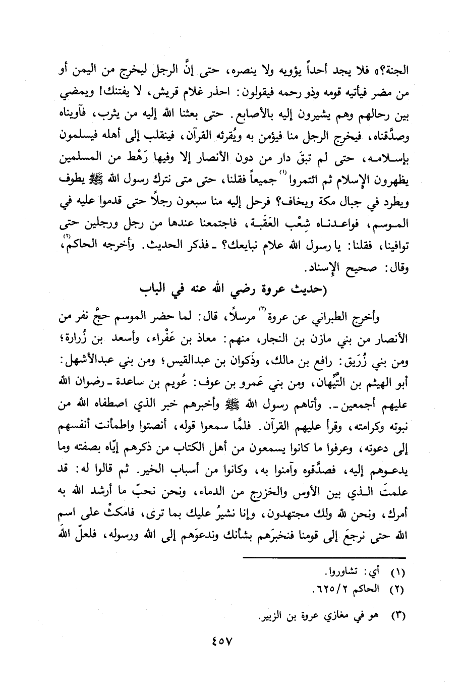 وأخرج الطبراني عن عروة رضي الله عنه مرسلاً قال: لما حضر الموسم حجَّ نفر من الأنصار من بني مازن بن النجار، منهم: معاذ بن عفراء، وأسعد بن زُرارة؛ ومن بني زُرَيق: رافع بن مالك، وذَكوان بن عبد القيس؛ ومن بني عبد الأشهل: أبو الهيثم بن التَّيِّهان، من بني عمرو بن عوف: عُويم بن ساعدة - رضون الله عليهم أمعين -. وأتاهم رسول الله صلى الله عليه وسلم وأخبرهم خبر الذي اصطفاه الله من نبوته وكرامته، وقرأ عليهم القرآن. فلما سمعوا قوله، أنصتوا واطمأنت أنفسهم إلى دعوته، وعرفوا ما كانوا يسمعون من أهل الكتاب من ذكرهم إيّاه بصفته وما يدعوهم إليه، فصدَّقوه وآمنوا به، وكانوا من أسباب الخير. ثم قالوا له: قد علمتَ الذي بين الأوس والخزرج من الدماء، ونحن نحبّ ما أرشد الله به أمرك، ونحن لله ولك مجتهدون، وإنا نشير عليك بما ترى، فامكث على إسم الله حتى نرجع إلى قومنا فنخبرَهم بشأنك وندعوَهم إلى الله ورسوله، فلعلّ الله