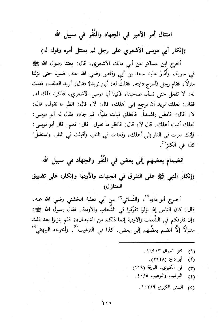 إنضمام بعضهم إلى بعض في النَّفْر والجهاد في سبيل الله إنكار النبي صلى الله عليه وسلم على التفرق في الجهادت والأودية وإنكاره على تضييق المنازل