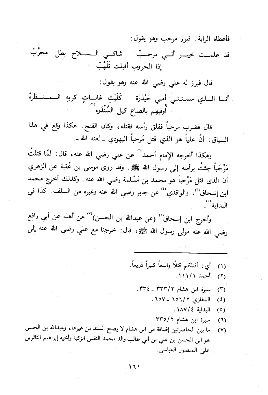 وهكذا أخرجه الإِمام أحمد عن علي رضي الله عنه قال: لمّا قتلتُ مرحباً جئت برأسه إلى رسول الله صلى الله عليه وسلم وقد روى موسى بن عقبة عن الزهري أن الذي قتل مرحباً وهو محمد بن مسلمة رضي الله عنه. وكذلك أخرج محمد بن إسحاق، والواقدي عن جابر رضي الله عنه وغيره من السلف. كذا في البداية.