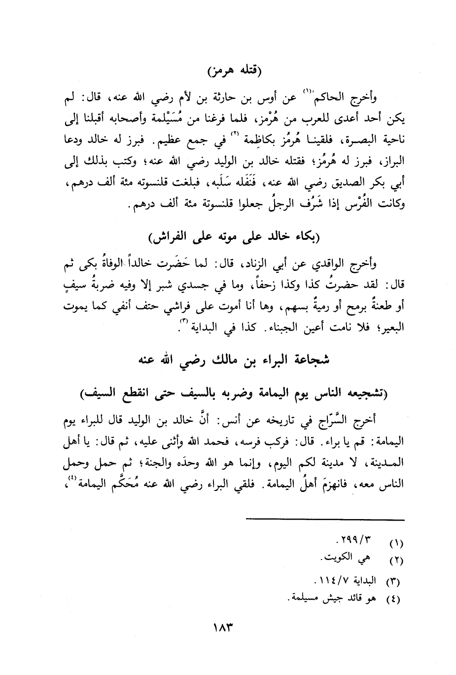 وأخرج الحاكم عن أوس بن حارثة بن لام رضي الله عنه قال: لم يكن أحد أعدى للعرب من هُرْمز، فلما فرغنا من مُسَيْلَمة وأصحابه أقبلنا إلى ناحية البصرة، فلقينا هُرمُز بكاظِمة في جمع عظيم. فبرز له خالد ودعاه للبراز، فبرز له هُرمُز؛ فقتله خالد بن الوليد رضي الله عنه؛ وكتب بذلك إلى أبي بكر الصديق رضي الله عنه، فَنَفَله سَلَبه، فبلغت قلنسوته مائةَ ألف درهم، وكانت الفرس إذا شَرُف الرجل جعلوا قلنسوته مائةَ ألف درهم.