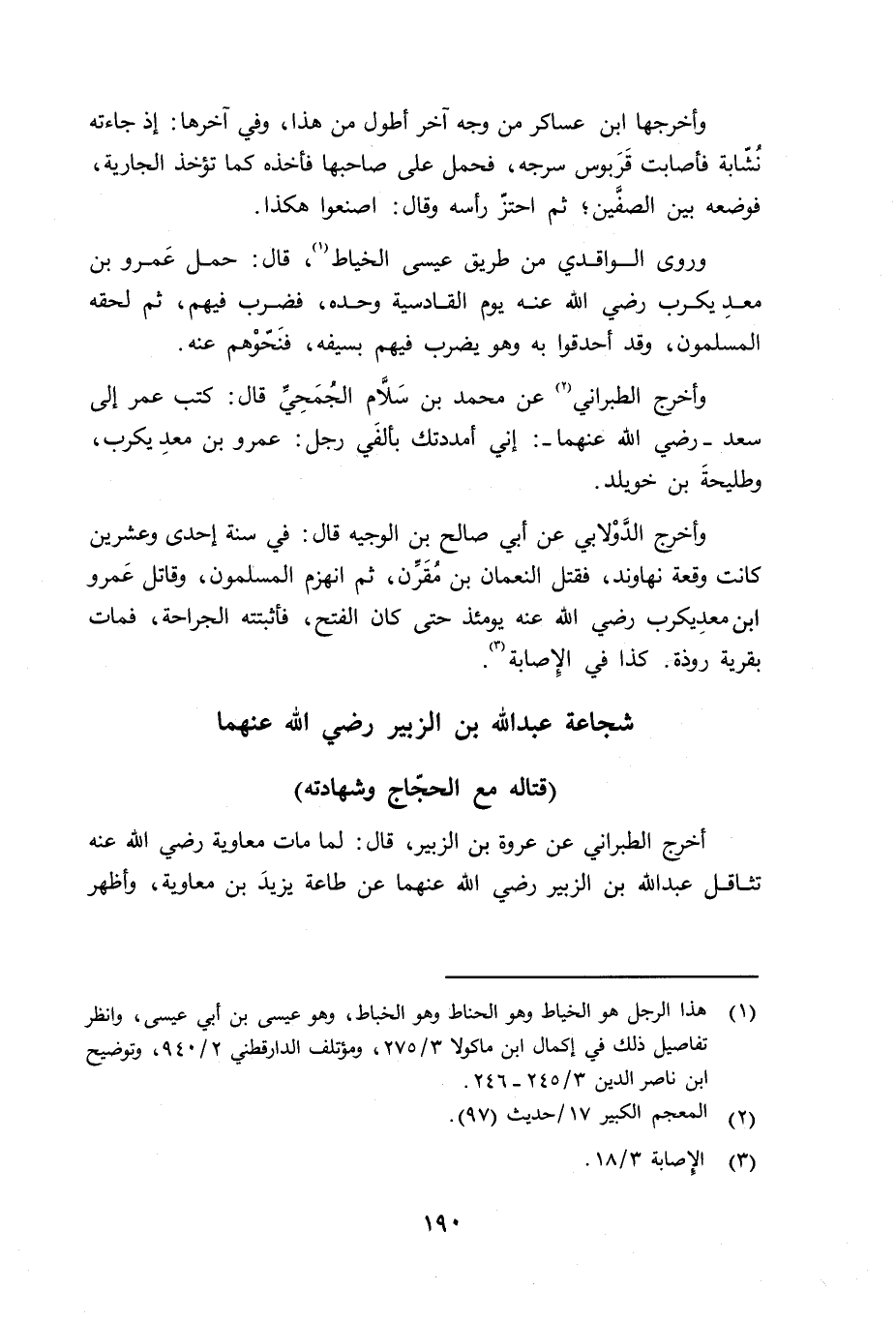 وأخرج الطبراني عن محمد بن سلام الجمحي رضي الله عنه قال: كتب عمر إلى سعد - رضي الله عنهما -: إني أمددتك بألفَي رجل: عمرِو بن معدِ يكرب، وطليحةَ بن خويلد.