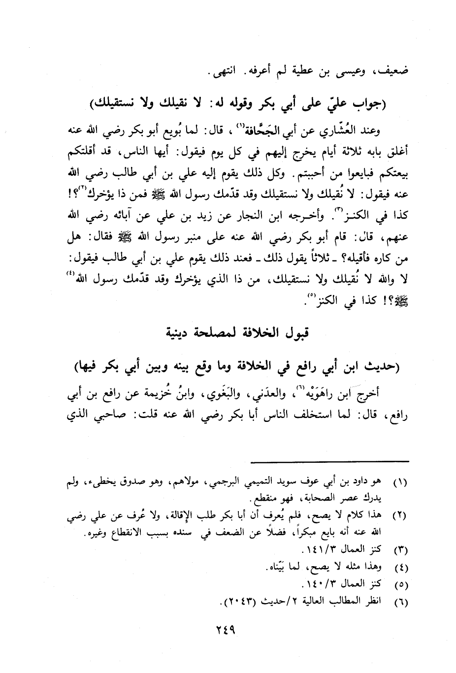 قبول الخلافة لمصلحة دينية حديث ابن أبي رافع في الخلافة وما وقع بينه وبين أبي بكر فيها
