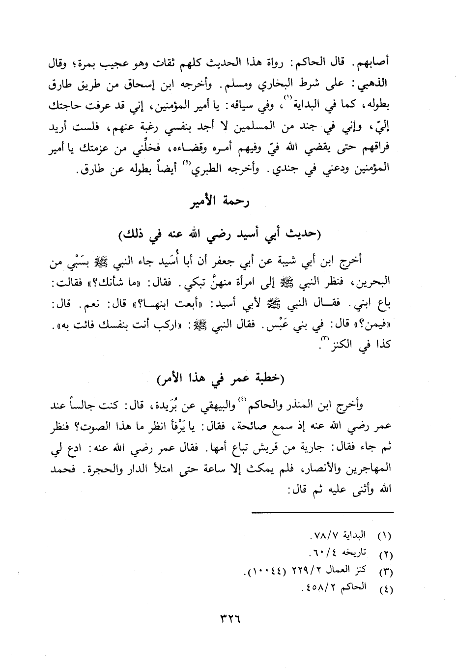 وأخرج ابن المنذر، والحاكم، والبيهقي عن بُرَيدة قال: كنت جالساً عند عمر رضي الله عنه إِذ سمع صائحة، فقال: يا يَرْفأ أنظر ما هذا الصوت؟ فنظر ثم جاء فقال: جارية من قريش تبع أمها. فقال عمر رضي الله عنه: أدع لي المهاجرين والأنصار، فلم يمكث إلا ساعة حتى امتلأ الدار والحجرة. فحمد الله وأثنى عليه ثم قال: