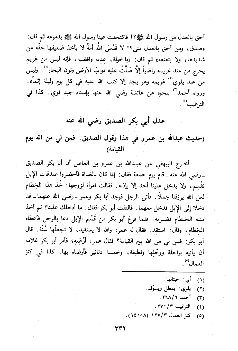 عدل أبي بكر الصديق رضي الله عنه حديث عبد الله بن عمرو في هذا وقول الصديق: فمن لي من الله يوم القيامة