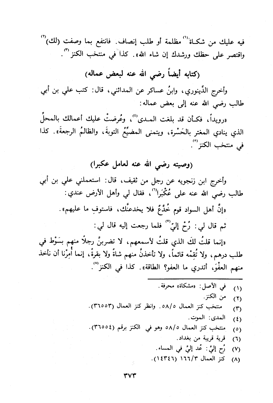 وأخرج الدينوري، وابن عساكر عن المدائني قال: كتب علي بن أبي طالب رضي الله عنه إلى بعض عماله: