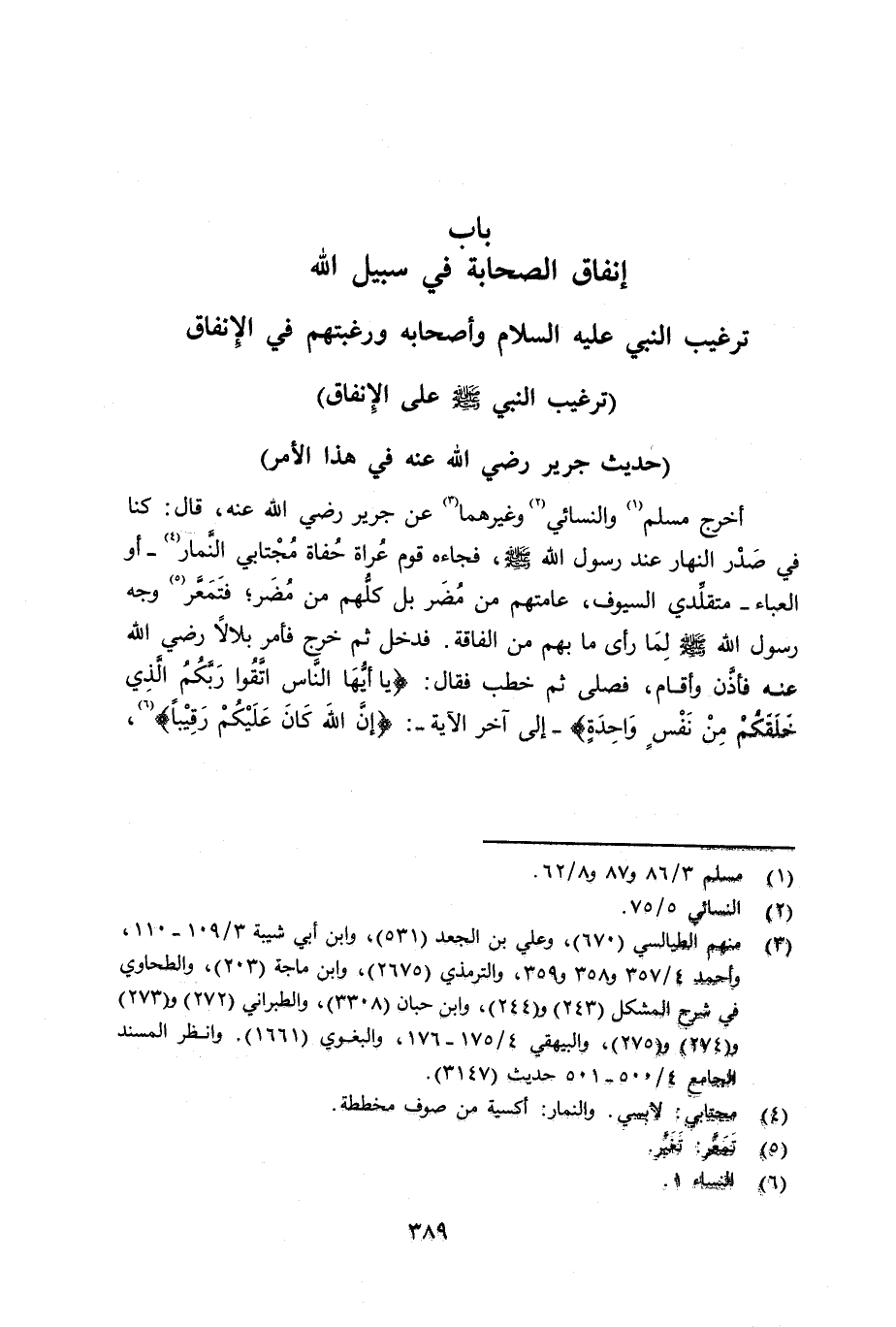 باب إنفاق الصحابة في سبيل الله ترغيب النبي عليه السلام وأصحابه ورغبتهم في الإِنفاق ترغيب النبي صلى الله عليه وسلم على الإِنفاق حديث جرير رضي الله عنه في هذا الأمر