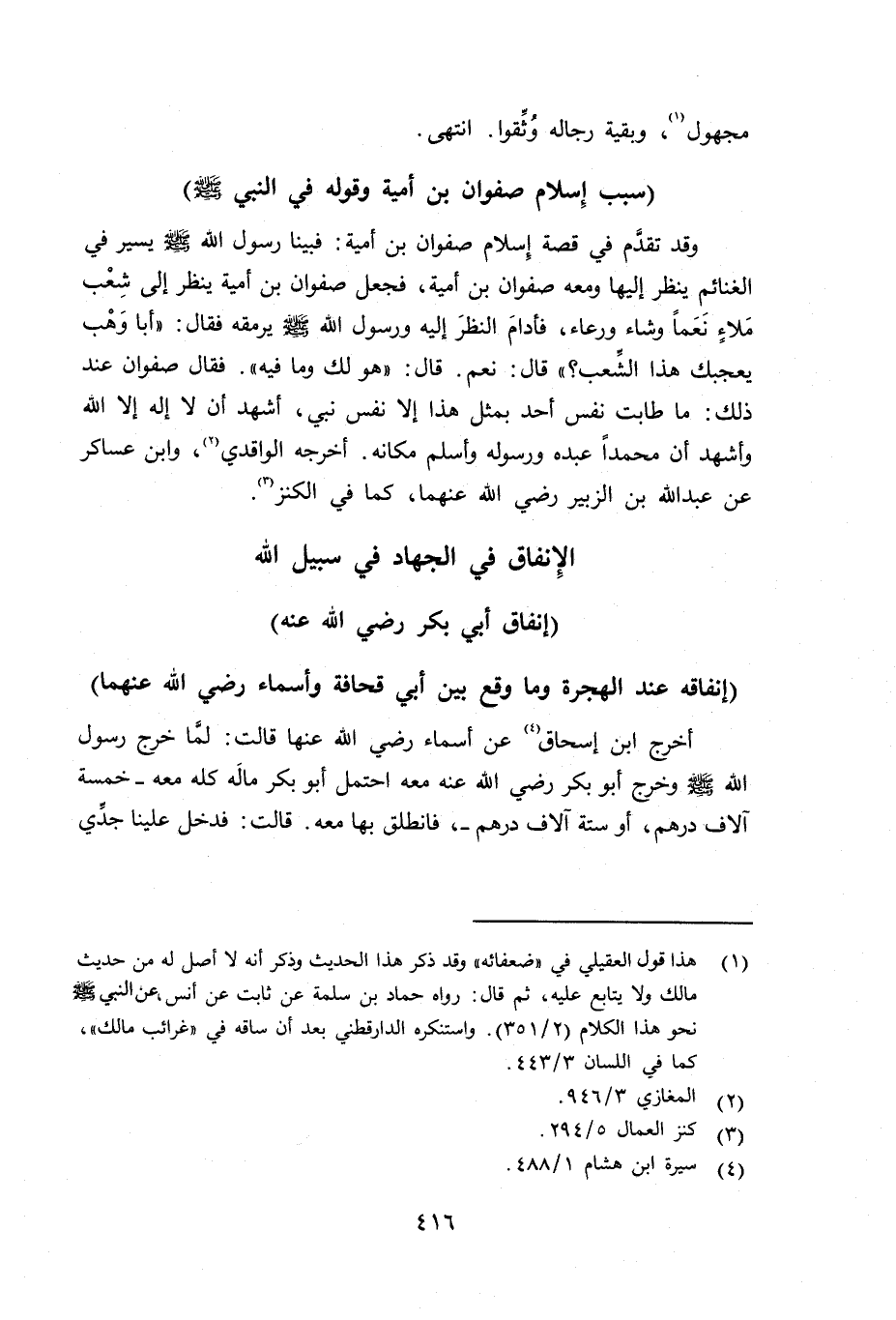 الإِنفاق في الجهاد في سبيل الله إنفاق أبي بكر رضي الله عنه إنفاقه عند الهجرة وما وقع بين أبي قحافة وأسماء رضي الله عنها