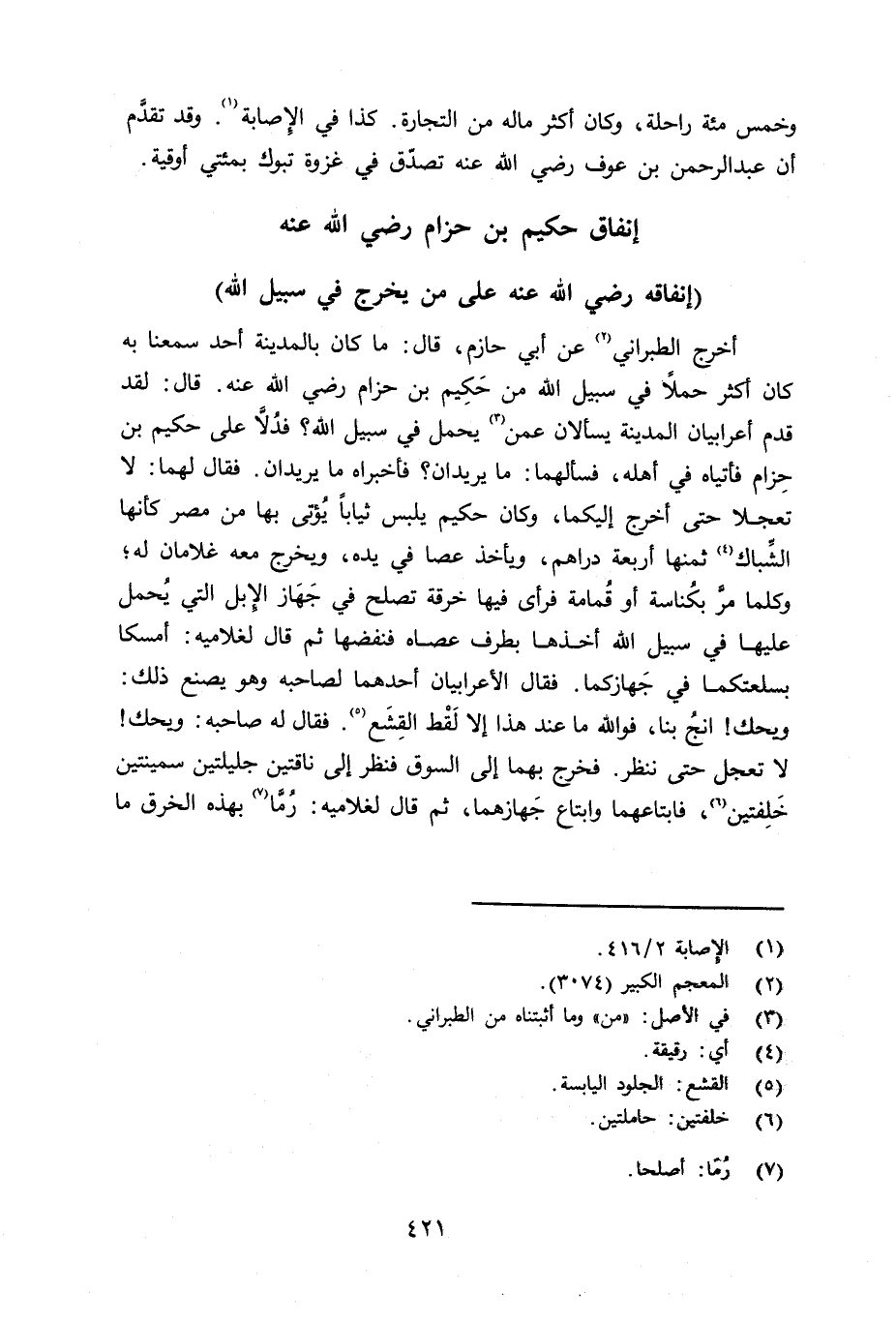 إنفاق حكيم بن حزام رضي الله عنه إنفاقه رضي الله عنه على من يخرج في سبيل الله