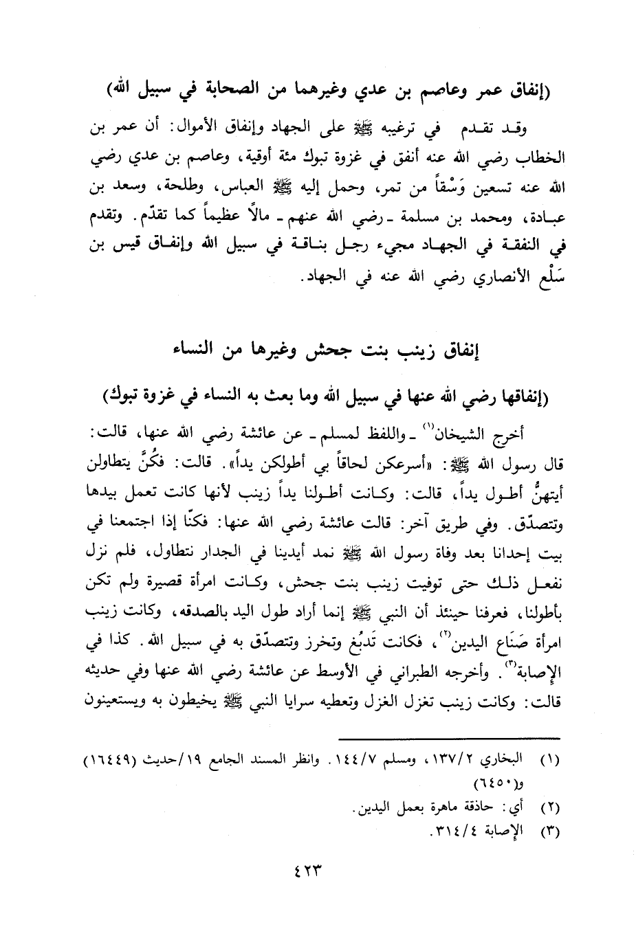 إنفاق زينب بنت جحش وغيرها من النساء إنفاقها رضي الله عنها في سبيل الله وما بعث به النساء في غزوة تبوك