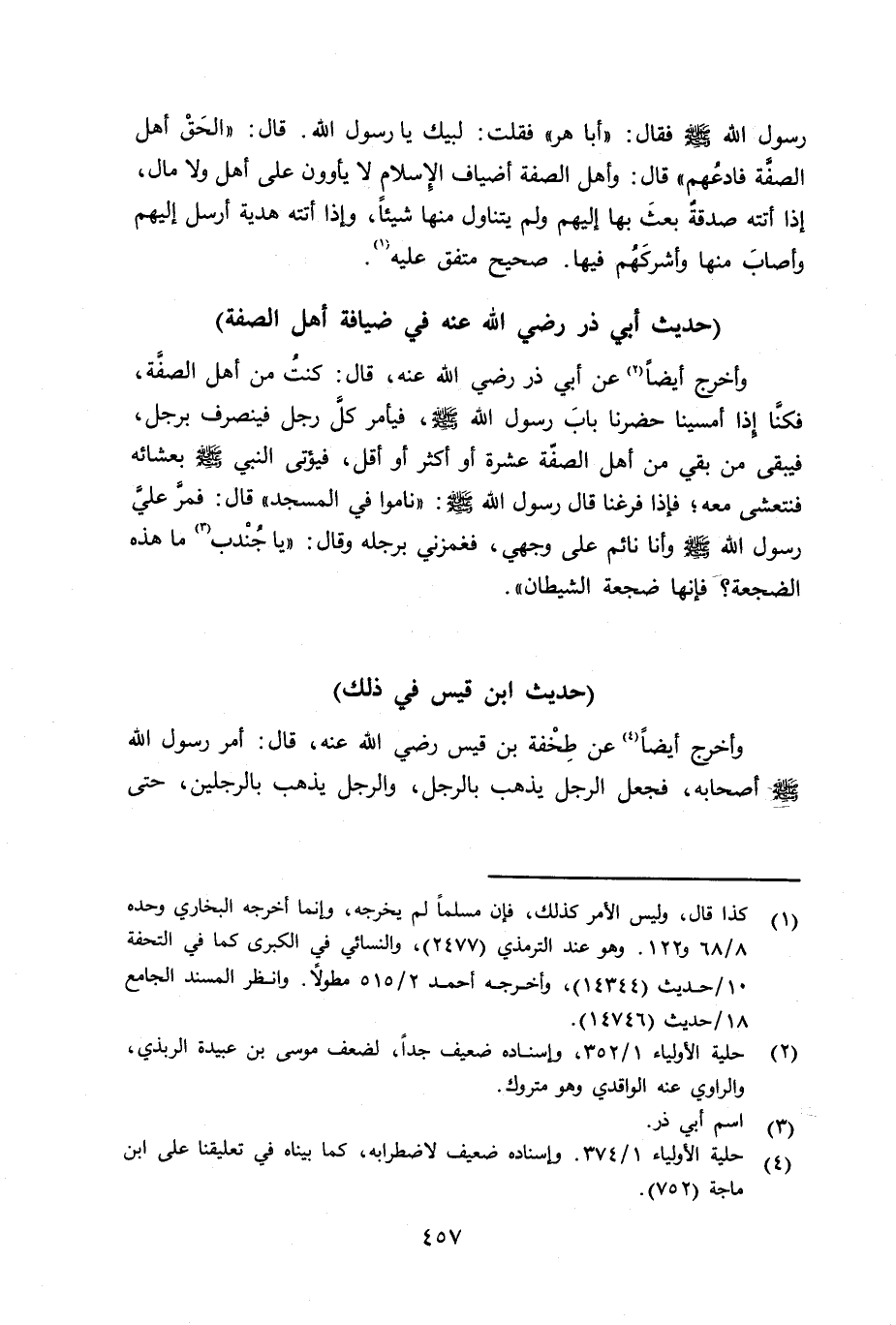 حديث أبي ذر رضي الله عنه في ضيافة أهل الصفة