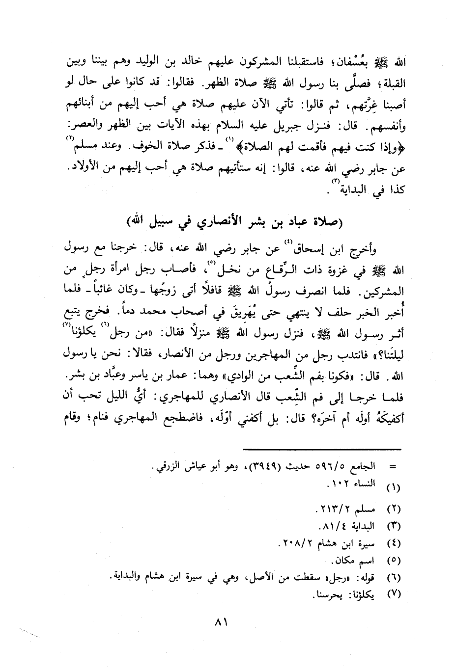 صلاة عباد بن بشر الأنصاري في سبيل الله
