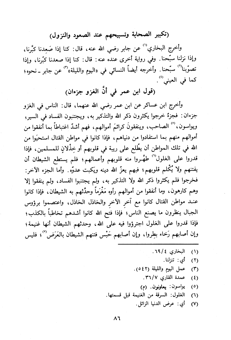 تكبير الصحابة وتسبيحهم عند الصعود والنزول