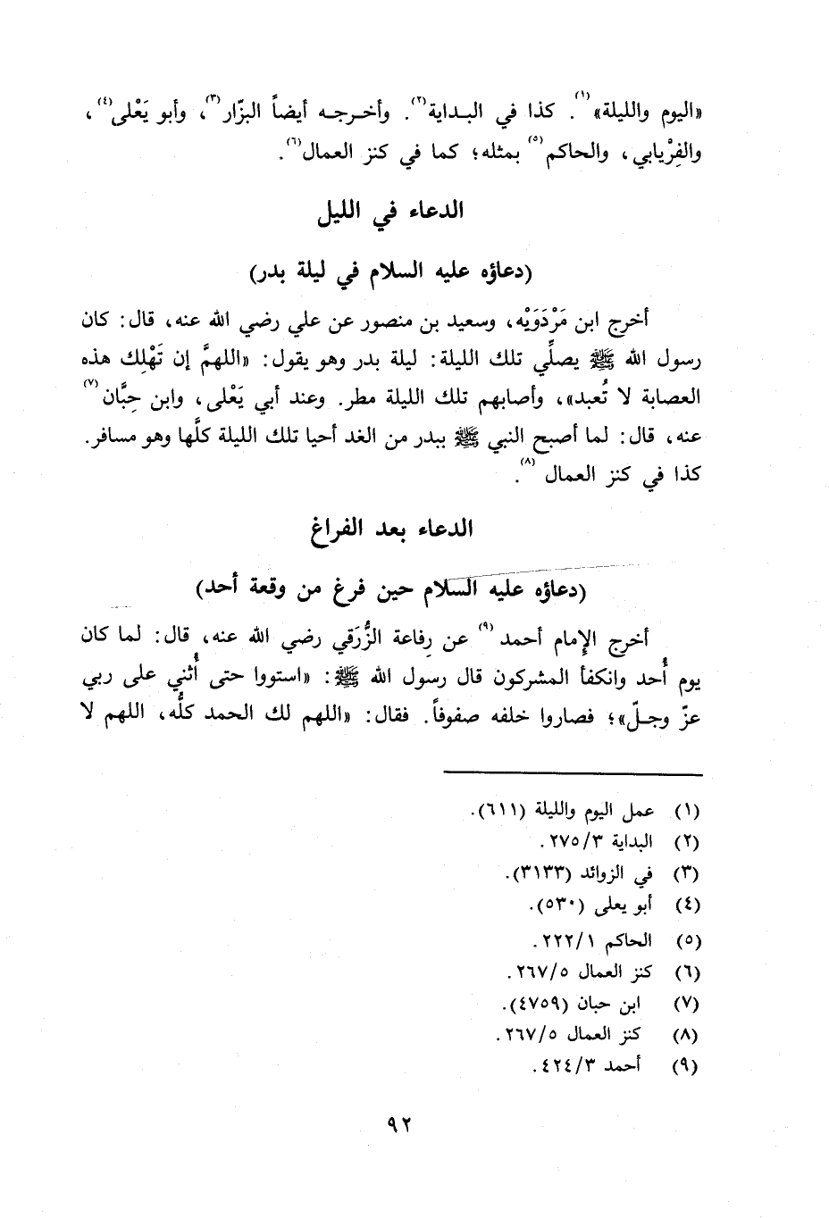 الدعاء في الليل دعاؤه عليه السلام في ليلة بدر
