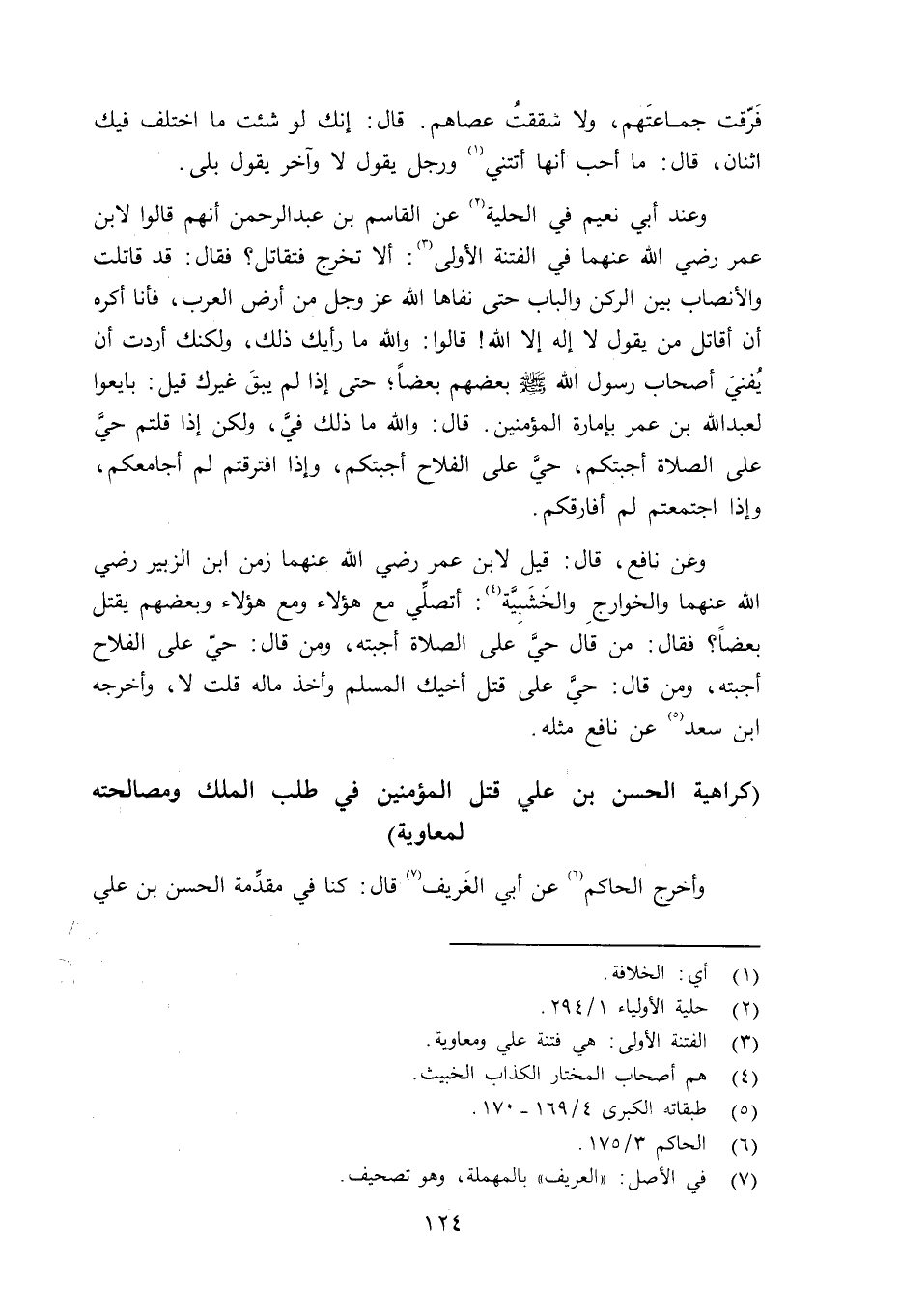 كراهية الحسن بن علي قتل المؤمنين في طلب الملك ومصالحته لمعاوية