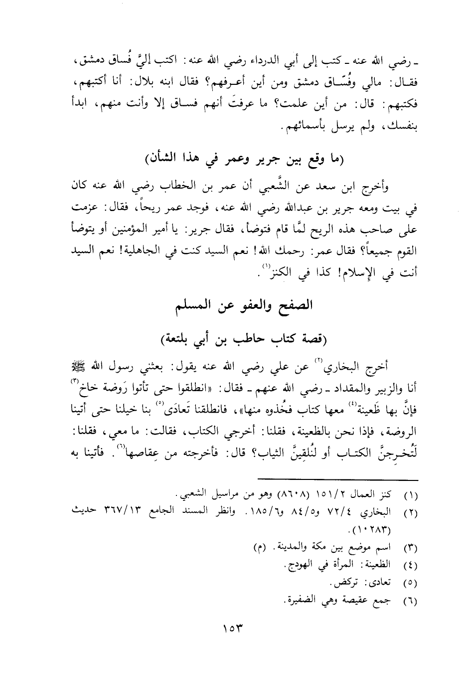 أخرج البخاري عن علي رضي الله عنه يقول: بعني رسول الله صلى الله عليه وسلم أنا والزبير والمقداد - رضي الله عنهم - فاقل: «انطلقوا حتى تأتوا رَوضة خاخ فإنَّ بها ظَعينة معها كتاب فخذوه منها» ، فانطلقنا تَعادَى بنا خيلنا حتى أتينا الروضة، فإذا نحن بالظعينة، فقلنا (لها) : أخرجي الكتاب، فقالت: ما معي، فقلنا: لَتُخرِجِنَّ الكتاب أو لنُلقِينَّ الثياب؟ قال: فأخرجته من عِقاصها. فأتينا به