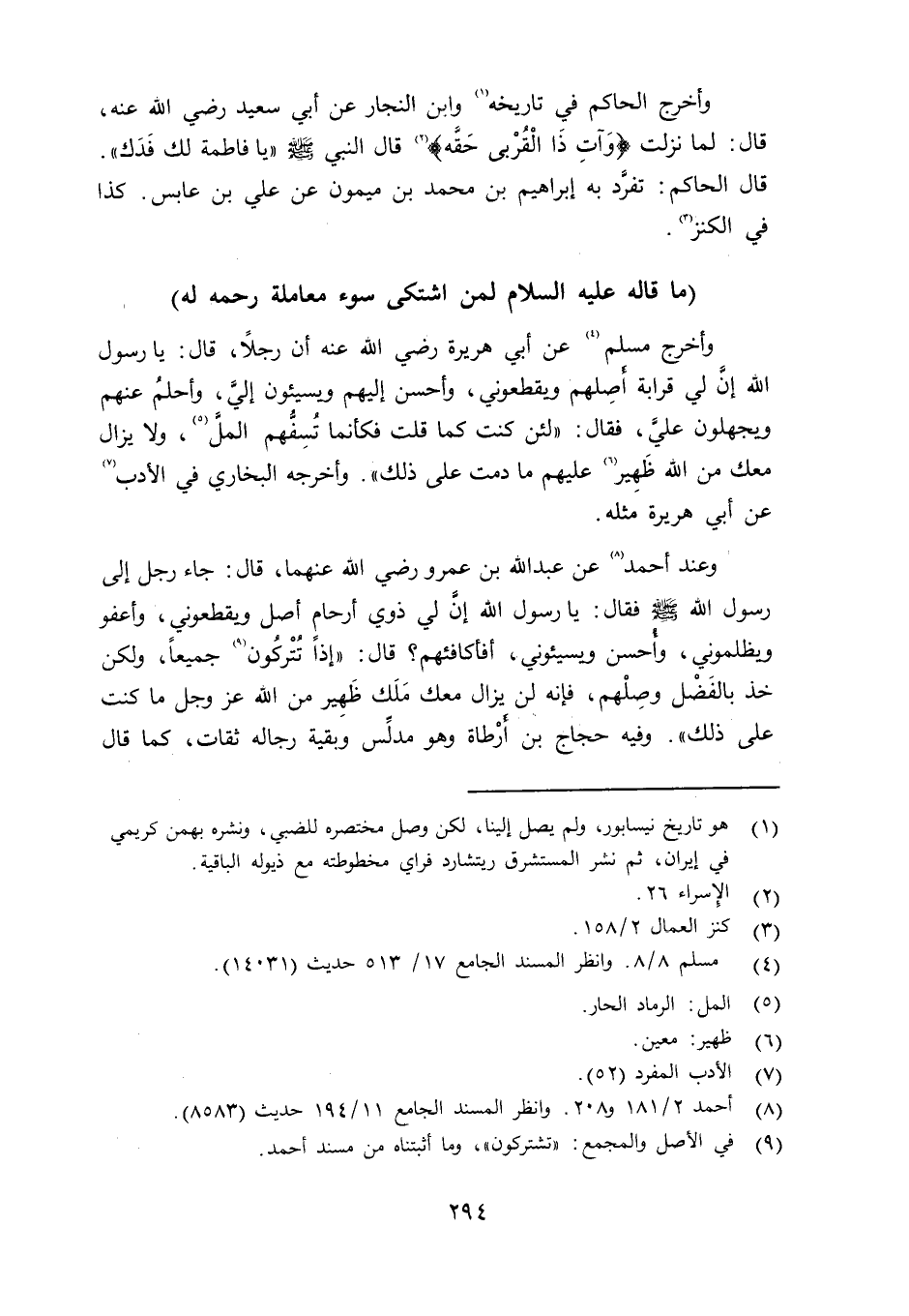 ما قاله عليه السلام لمن اشتكى سوء معاملة رحمه له