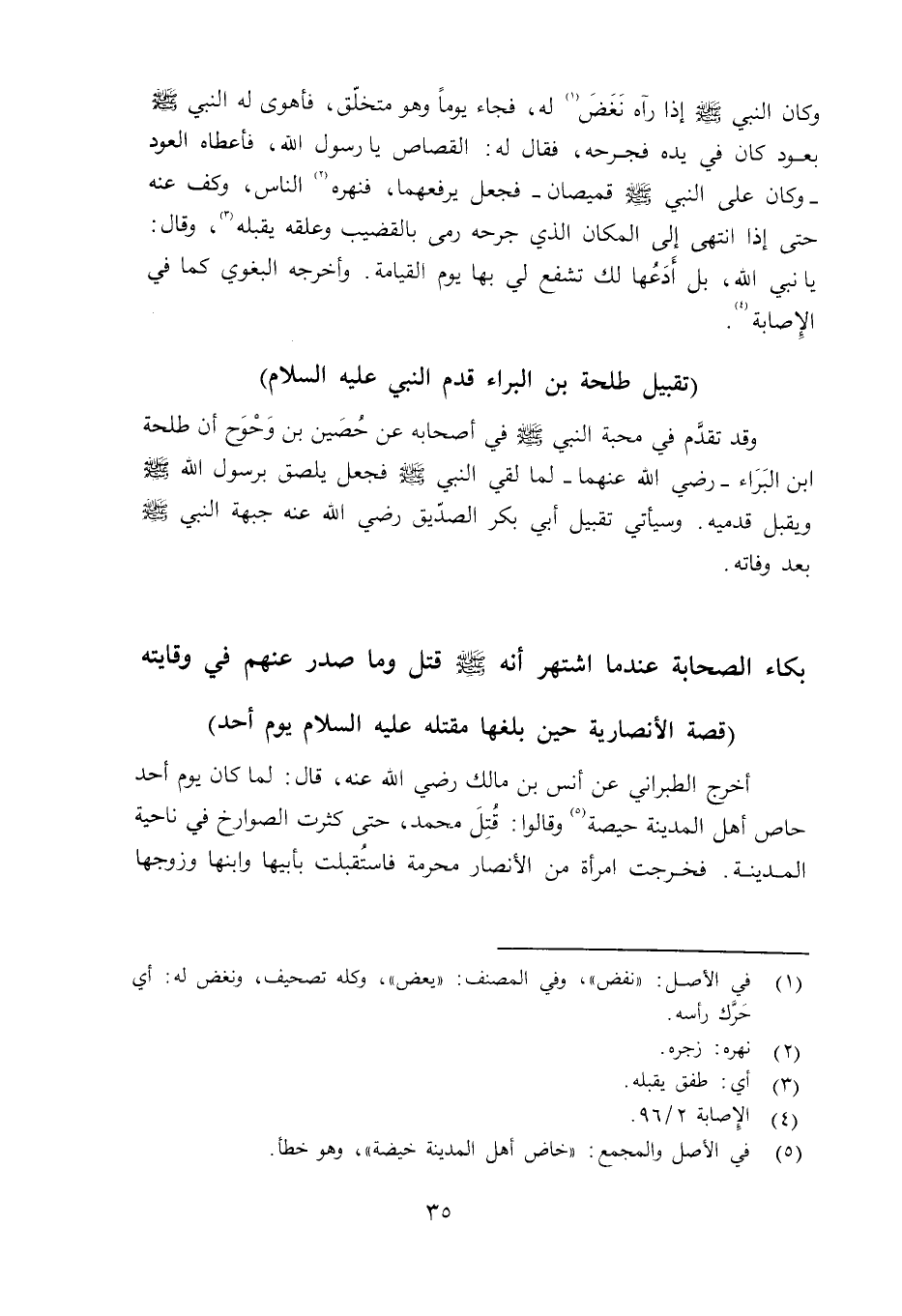 تقبيل طلحة بن البراء قدم النبي عليه السلام